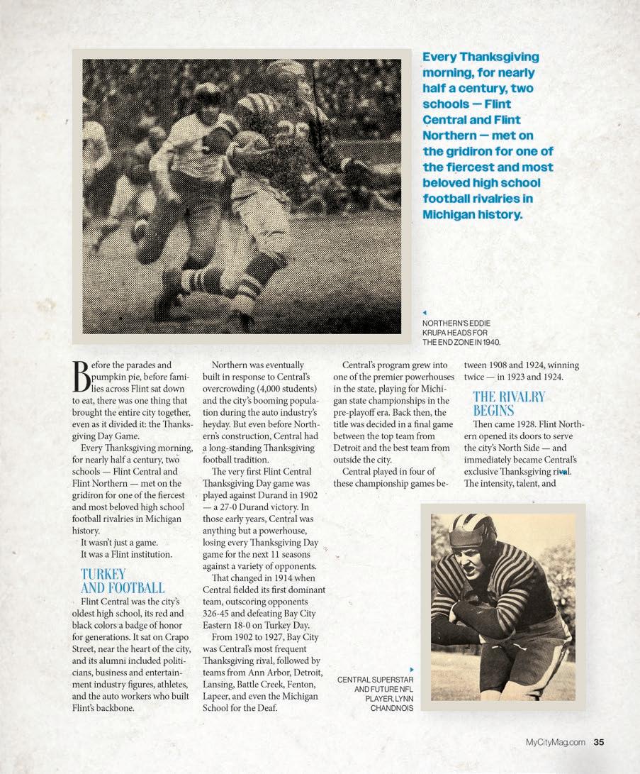 For sports enthusiasts, November is the perfect time for football, hockey, and basketball. Don’t miss Gary Fisher’s story about the famous anksgiving Day football rivalry games between Flint Northern and Flint Central.