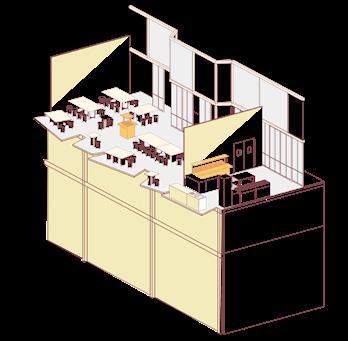 Associations give lessons to help get the migrants accepted by the French society. The rooms are modular to create an efficient shape for each lecture.