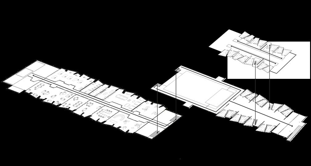The utopian project 202 intends to give to the irregular migrants of the canal the opportunity for legal integration. Located on the roof of Le Point Éphémère -a multidisciplinary building- the proposal offers lessons and help from associations, as well as a temporary stay in the housing units. The project is divided into three parts, the residential and the association wings on both ends of the building, with the reception area in between the two.