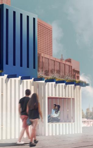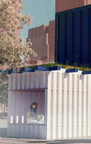 The proposal takes inspiration from the Persian gulf’s wind tower, by using the adobe structure and the air pressure mecanism to create a pleasant cold air flow. Its shape offers an intimate space in the center and three open areas on the side that interact with the street.