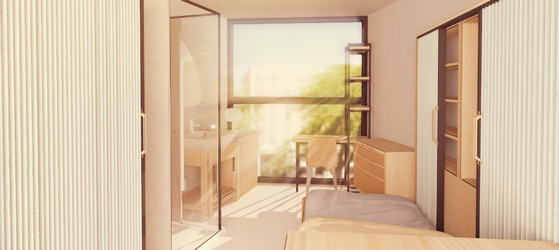 Units are compact private spaces composed of a bathroom, a cabinet for storage, a desk and a bed. All units got a different view to make it unique.