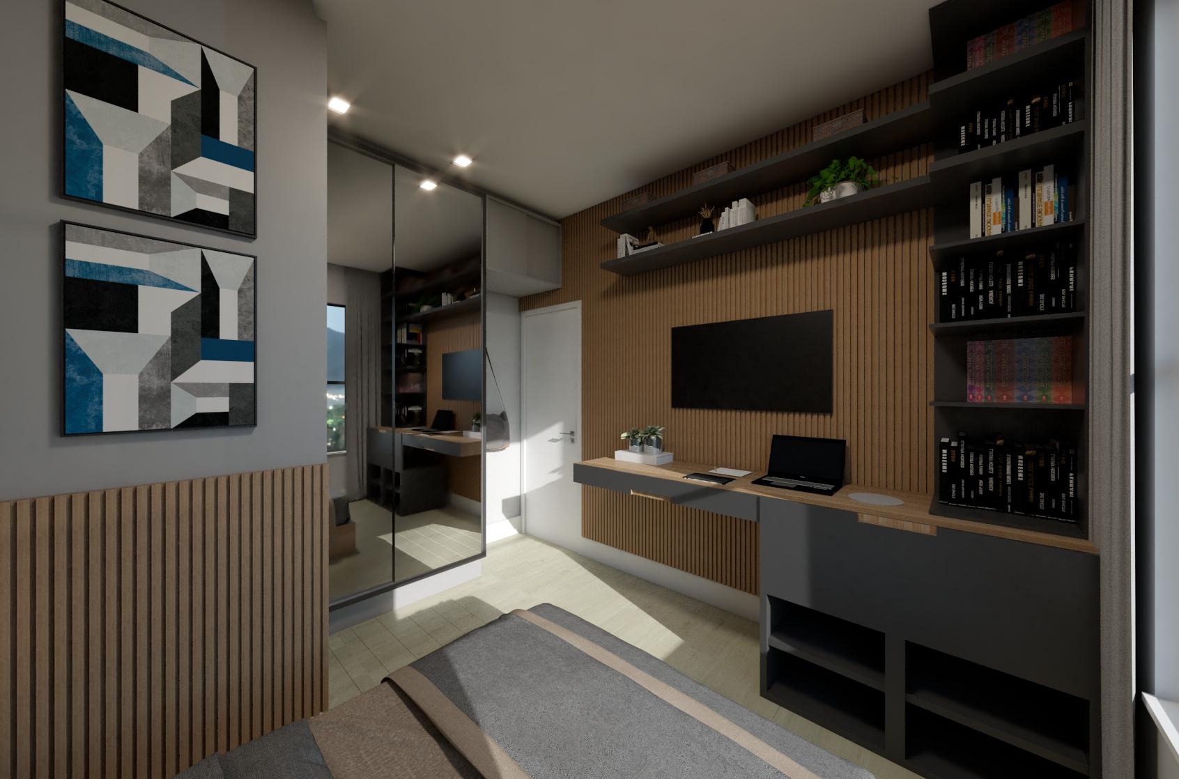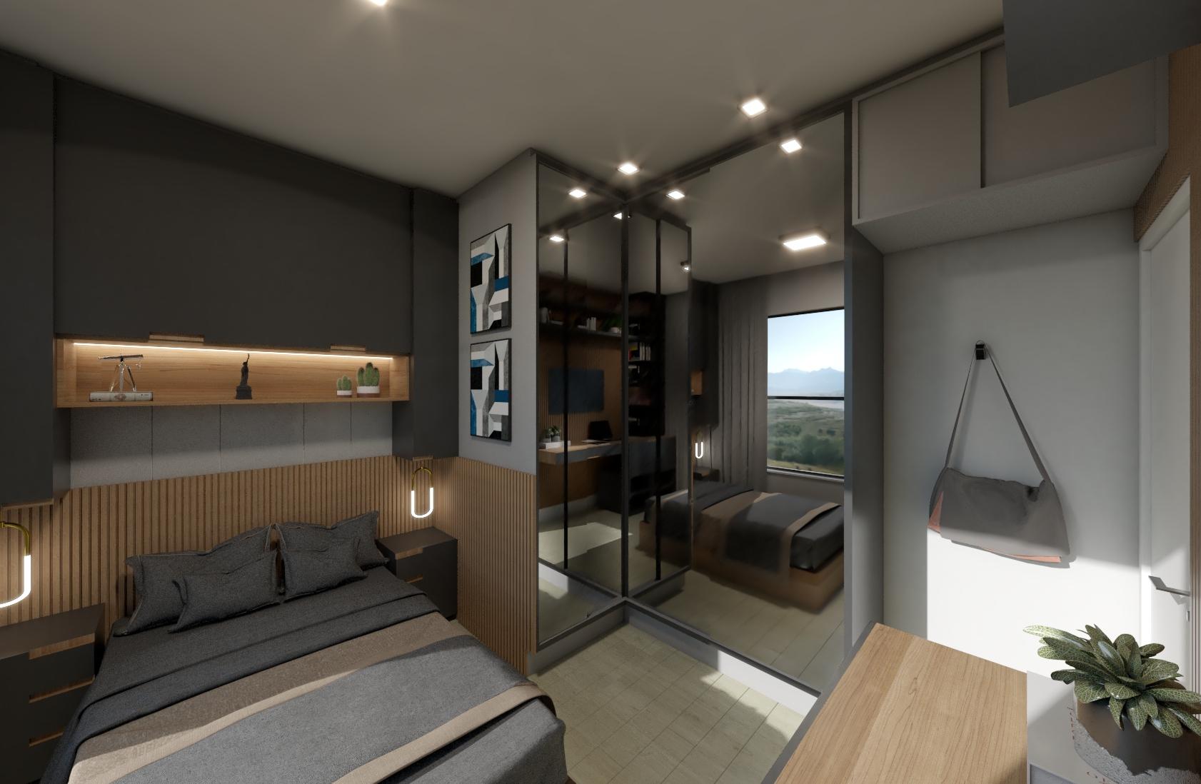 Cinza - Duratex e Portas de correr com espelho