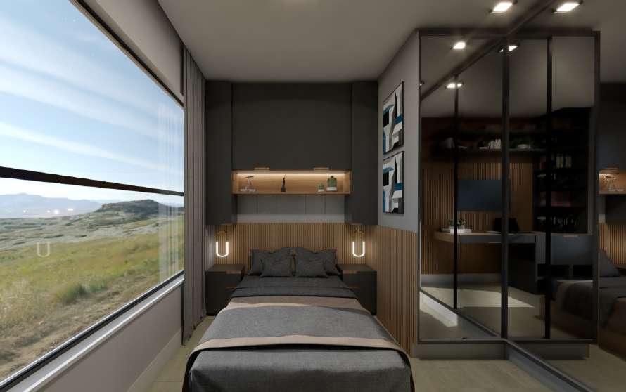 O grande desafio desse ambiente foi conseguir o máximo aproveitamento do espaço sem prejudicar a circulação e a sensação de espacialidade do quarto.