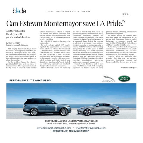 place in all our hearts and it means a lot of different things to a lot of different people. Because of how special it is, there is always a desire to protect it and ensure that it lives on for future generations, I admire that. As an organization, we are trying to reflect a diverse community with very diverse views. CSW, as an organization, does not have an endowment and currently its only major fundraising source is the festival. The festival actually pays for the parade. I’m very excited about this year’s festival, featuring a diverse array of artists, including two popular female headliners as well as a number of gay, lesbian, bisexual, and transgender performers across all of the LA Pride Festival’s three stages. The festival is very much part of our mission at LA Pride.