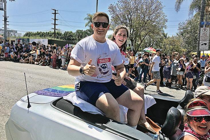 Edmonds, Wash. native Ryan Karnoski spent a heady couple of days in Los Angeles recently, delivering the keynote address at Lambda Legal’s West Coast Liberty Awards on June 7 and riding with his bride Ester Matskewich in the LA Pride Parade on June 10. A photo of Donald Trump with a “Sued” sticker slapped across his eyes captures only a flash of this young trans man’s fight for LGBT equality.