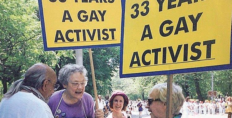 “I had a couple of friends that died of that mysterious disease that nobody really had a name for,” she says.“I remember I went to visit one friend. I brought him a teddy bear and the next day he was dead. Gay people were a despised minority. As a German Jewish refugee, I took it very seriously. I had a lot of friends that died.”