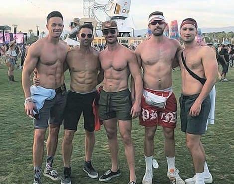 Last week, I told you all about disgraced former U.S. Rep. Aaron Schock’s same-sex lip-lock at Coachella (video can be found on billymasters.com). Along with the clip of him rummaging around in his dance partner’s shorts, there was also a photo of him with a group of hot shirtless men. We told you that two of the guys were a notable West Hollywood personal trainer and his boyfriend.
