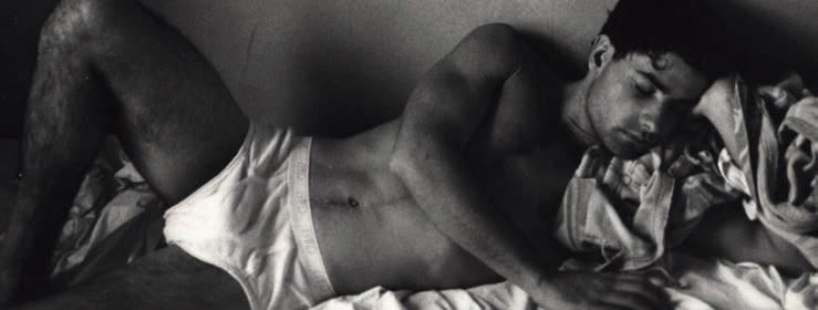 A work by Bill Costa, from the Leslie-Lohman collection. Registrar Branden Wallace traces the images of purity (white linen, smooth body) to the advent of AIDS and HIV. Photo courtesy of the Leslie-Lohman Museum of Gay and Lesbian Art