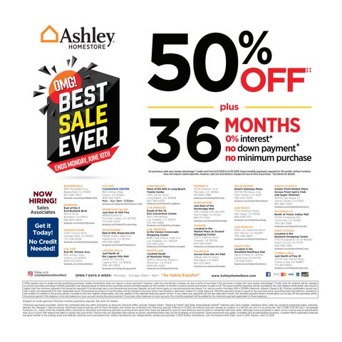 PALM DESERT Desert Gateway Plaza 34740 Monterey Ave Palm Desert, CA 92211 760-202-3052 facebook.com/AshleyHSPalmDesert