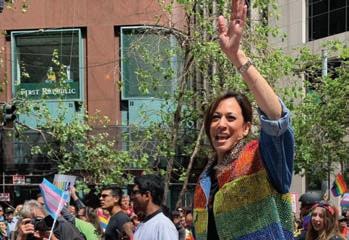 While the eyes of the nation might be focused on WorldPride in New York City commemorating the 50th anniversary of the Stonewall Rebellion, lots of political eyes were on San Francisco where newly surging Democratic presidential candidate Kamala Harris rode in the Pride parade. The junior senator from California, who has regularly participated in Pride since she was district attorney, was decked out in a shiny rainbowcolored jacket, an abrupt welcomed departure from her black pantsuit uniform. Before the parade she —and Speaker Nancy Pelosi—attended the Alice B. Toklas LGBT Democratic Club breakfast. “We need