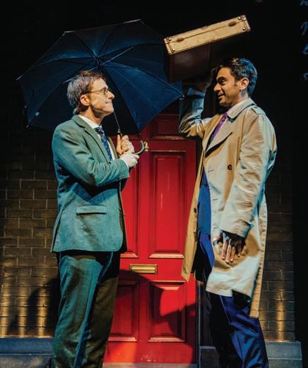 There is much to delight audiences to be found in this spectacularly staged production. Director Matt Shakman and set designer Brett J. Banakis pull out all the stops in creating an immersive, bombastic experience, dispensing liberal amounts of theatrical magic to dazzle us and challenge our perceptions. The aforementioned Tudyk, widely known for his roles in films like “Death at a Funeral” and his award-winning voice work, makes Green a simultaneously endearing and frustrating figure, bringing empathy to this reallife enigma; he also doubles in a suitably over-the-top turn as Sherlock Holmes, showing off his considerable comic skills to make those sequences a highlight of the show. Surrounding him is an ensemble of equally talented actors – five men, one woman – who take on the multitude of other roles; Ramiz Monsef stands out both as the Watson to Tudyk’s Holmes and as the love interest that Green (who was gay) lets slip away, as does Helen Sadler in her impressive rendering of all the females in the play.