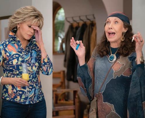 With Jane Fonda as vodka martini-loving, megaWASPish cosmetics company founder Grace Hanson and Lily Tomlin as hard-toking, hearing-challenged free spirit Frankie Bergstein, these two women with only mutual loathing in common are thrust together by a shocking announcement: Their divorce lawyer husbands, ultra-liberal people-pleaser Sol Bergstein (Sam Waterston) and musical theater-loving, comparably conservative Robert Hanson (Martin Sheen) are embarking on a life together. Appropriately stunned, Grace and Frankie both stake their claim to the beach house whose “good investment” purchase served as canoodling central for Sol and Robert. A younger generation is also experiencing upheavals, as the Hansons and Bergsteins each have two children. Respectively, they are brood-tending, troubledmarriage Mallory (Brooklyn Decker) and filterless insult savant Brianna (June Diane Raphael), and adopted sons Coyote (Ethan Embry, as a recovering addict) and Bud (Baron Vaughn, as a divorce lawyer and go-to fixer of family drama).