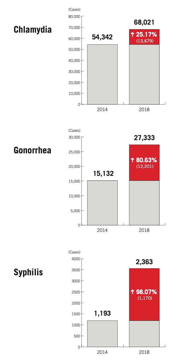 Using the county’s own data, the Center reported that “[o]ver the last five years, there has been a 98 percent increase in primary and secondary syphilis; 81 percent increase in gonorrhea; and 25 percent increase in chlamydia cases in Los Angeles County. Alarmingly, the epidemic disproportionately impacts communities