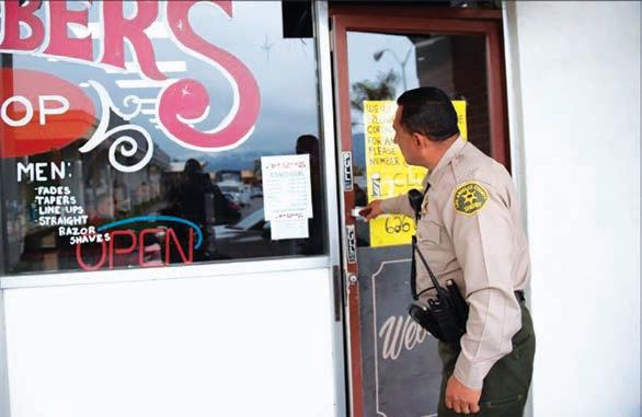 D.<=&,$L#+=;"F'$,)B2=&+/,#$;#+B'$,)/;&/.#$;)$>&'&;$ businesses across the County every day. Inspectors review the requirements of the Health Offi cer 4%1#%$+/1$D.<=&,$L#+=;"$2%);),)='$C&;"$<.'&/#''$ owners, identify defi ciencies, and issue citations for businesses out of compliance.
