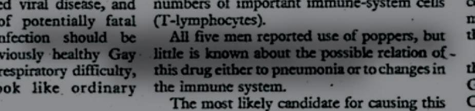 The focus on gays may have been prompted byĀ the article in the New York Times one month later, on July 3, 1981. The small story, āRare Cancer Seen in 41 Homosexuals,ā was published on page 20 and focused on Kaposiās Sarcoma.