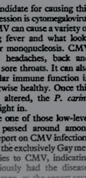 Shandera found some CMV growing from a patient sample from Santa Monica. āHe went down to Santa Monica hospital and spoke to the patient and indeed, it was a gay man with pneumocystis, pneumonia and CMV as well. And so he unearthed a fourth patient,ā says Gottlieb.