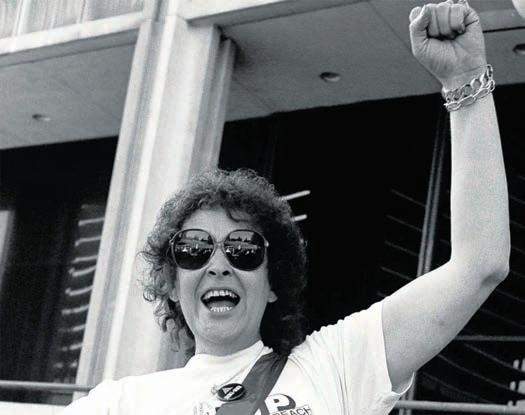 tanding proudly in her multiple, uid, and evolving T identities, she became a fixture in the campaign to raise awareness about the terrifying epidemic that was decimating the queer community – and the inadequate, often inhumane care afforded to its stigmati ed victims. In addition to her work with ACT UP, she shared her soulful and salty rantings and intersectional politics through her local LGBTQ newspaper column and her pioneering LGBTQ cable television show – the first daily talk show about gay issues hosted by a gay rights activist on a commercial os Angeles-area station. She charmed even the opposition with her piercing and compassionate voice, building bridges in gender issues and politics and evoking a humanitarian, neighborly, transcendent vision of life and love not just for her own queer tribe but for all. Herself diagnosed with AIDS, she continued to work tirelessly until her death from complications of the disease in 1996. A few months later, her ashes were scattered on the White House lawn as part of ACT UP’s “ashes action” in protest of government inaction against AIDS.