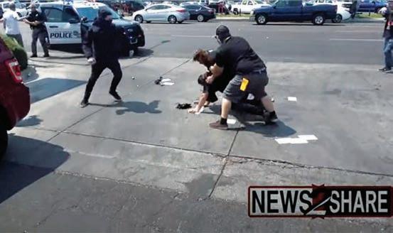 Approximately an hour after the Proud Boys rally commenced the two sides ended up clashing resulting in the discharge of Bear Spray and numerous fistfights. Modesto Police were dispatched to the scene to break up the ongoing melee and effected two misdemeanor arrests.