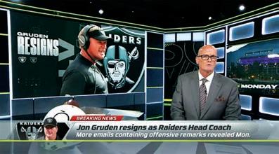 In a statement released by the team late Monday, Gruden said; “I have resigned as Head Coach of the Las Vegas Raiders. I love the Raiders and do not want to be a distraction. han you to all the layers oa hes sta and fans of aider ation sorry ne er meant to hurt anyone.”