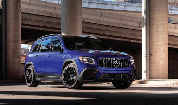 A tall cabin allows for plenty of headroom, and there’s a decent amount of cargo space for such a small vehicle. But while a third seat can be ordered, I’m not sure anyone would want to perform the contortions necessary to sit there. Along with the sassy attitude, the GLB35 is still plenty classy. LED headlights and taillights come standard, as do rain-sensing wipers, dual-zone automatic climate control and ambient lighting that can be customized with choice of 64 colors. There are two large, 10.25-inch digital displays: one for the instrument cluster and the other a touchscreen for the infotainment system. And some $10,000 in options include panoramic sunroof, 12-speaker Burmester stereo, logo puddle lamps, real-wood trim and other goodies. Overall, the GLB35 is a rebel with a cause: part tuner car, part pocket rocket and, above all, nonstop excitement.
