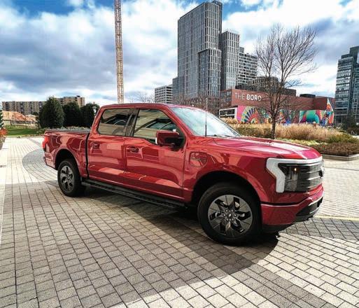 The real excitement, though, is behind the wheel. Power comes from two electric motors configured to provide standard all-wheel drive. Add in the extended-range battery for more horsepower and tor ue, and this pickup handles just like a sports car. The instant acceleration—especially when stomping on the gas, er, throttle pedal—must be what it’s like when a spaceship rockets off the launch pad. Except in the Lightning, there’s no backand-forth shuddering, and no noise. Everything’s perfectly, eerily uiet in the well-insulated cabin.
