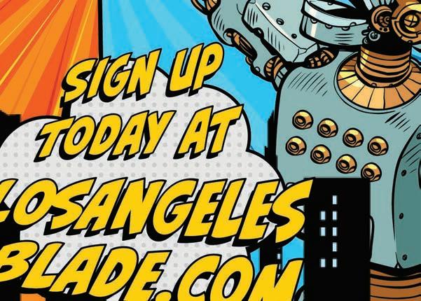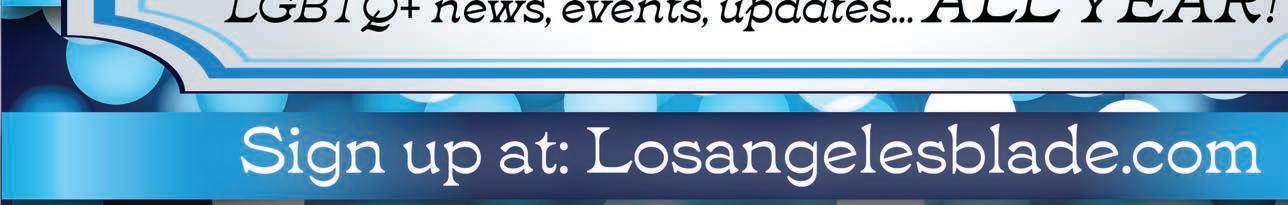 All material in the Los Angeles Blade is protected by federal copyright law and may not be reproduced without the written consent of the Los Angeles Blade. e sexual orientation of advertisers, photographers, writers and cartoonists published herein is neither inferred nor implied. e appearance of names or pictorial representation does not necessarily indicate the sexual orientation of that person or persons. Although the Los Angeles Blade is supported by many ne advertisers, we cannot accept responsibility for claims made by advertisers. Unsolicited editorial material is accepted by the Los Angeles Blade, but the paper cannot take responsibility for its return. e editors reserve the right to accept, reject or edit any submission. A single copy of the Los Angeles Blade is available from authorized distribution points, to any individual within a 50-mile radius of Los Angeles, CA. Multiple copies are available from the Los Angeles Blade o ce only. Call for rates. If you are unable to get to a convenient free distribution point, you may receive a 26-week mailed subscription for $195 per year or $5.00 per single issue. Checks or credit card orders can be sent to Phil Rockstroh at prockstroh@washblade.com. Postmaster: Send address changes to the Los Angeles Blade, PO BOX 53352 Washington, DC 20009. e Los Angeles Blade is published bi-weekly, on Friday, by Los Angeles Blade, LLC. Rates for businesses/institutions are $450 per year. Periodical postage paid at Los Angeles, CA., and additional mailing o ces. Editorial positions of the Los Angeles Blade are expressed in editorials and in editors’ notes as determined by the paper’s editors. Other opinions are those of the writers and do not necessarily represent the opinion of the Los Angeles Blade or its sta To submit a letter or commentary: Letters should be fewer than 400 words; commentaries should be fewer than 750 words. Submissions may be edited for content and length, and must include a name, address and phone number for veri cation. Send submissions by e-mail to tmasters@losangelesblade.com.