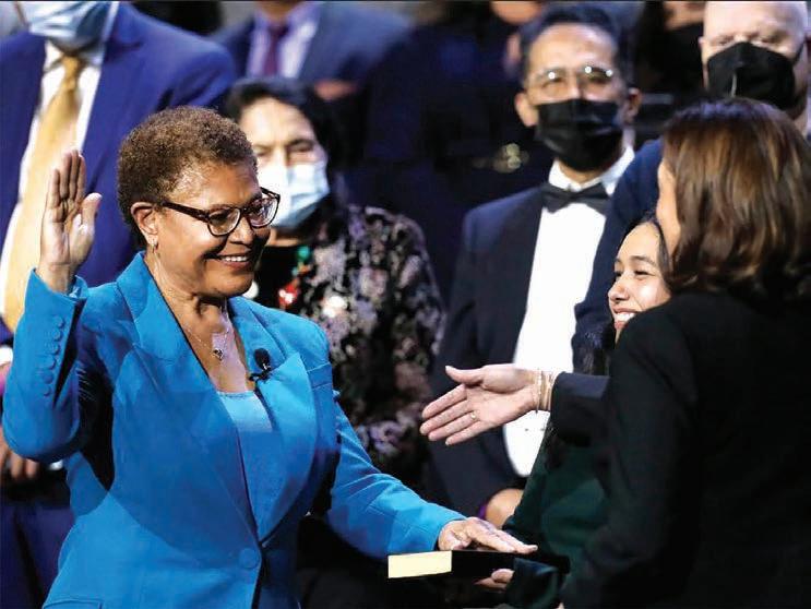 Bass was sworn in by the Vice-President of the United States Kamala Harris, the first Black and first woman American ever elected to hold that office.