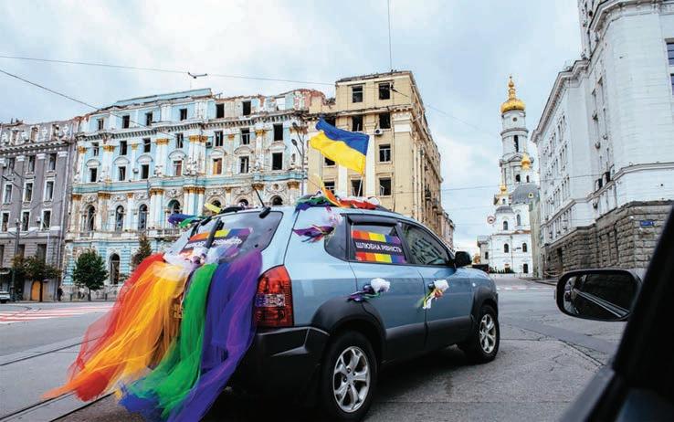 Anna Sharyhina, co-founder of the Sphere Women’s Association, a group that promotes LGBTQ and intersex rights in Ukraine, last September led a Pride march in a subway station in Kharkiv, the country’s second-largest city that is less than 30 miles from the Russian border in eastern Ukraine.