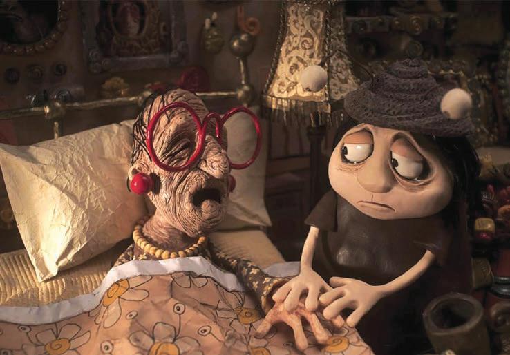 and guinea pigs – all of which serve as both consolation and distraction from her seemingly impossible dream of following in her father’s footsteps to make animated films – it is her bond with Pinky that may finally provide her with the lifeline to keep her hope alive. Striking a delicate balance between sentiment and savvy, Elliott’s film – his first feature effort since 2009’s “Mary and Max” – bridges the gap expertly with just enough satirical exaggeration to avoid being maudlin, yet keeps its eye on the redemptive prize (despite the occasional Dickensian twist) by treating Grace with the kind of empathy that can only be achieved by putting the audience completely into her shoes. Without spoilers, we watch as she goes through multiple quirky-yet-relatable setbacks, reinforcing the connection with our own inner misfit by conjuring familiar (and potentially unifying) feelings of inadequacy and leading us, inevitably, to forgive ourselves for our perceived shortcomings. Visually, “Memoir of a Snail” evokes memories of many other stop-motion efforts, contrasting the inherent “cuteness” of its style with the less-comforting content of its storyline. Resembling a tried-and-true “Wallace and Gromit” film (such as fellow Oscar-nominee “Vengeance Most Foul”) but decidedly more focused on the inner lives of its characters, it blends and contrasts a familiar and traditional form with an emotional honesty that disarms our cynicism. Mixed with its comforting whimsy is an acknowledgement of life’s dark corners, a frank awareness that, sometimes, loss and sorrow happen and there’s nothing to be done but to go through them – there are no fantastical inventions to ease Grace’s path, no tongue-in-cheek capers that can set things right and restore her world to some kind of happy status quo; like the rest of us, she must work through the darkness not to get back to the way things were, but to arrive at a place where new things are possible –where the grief and sorrow that are inevitably woven into our life can be weathered and overcome, even if they can’t be avoided.