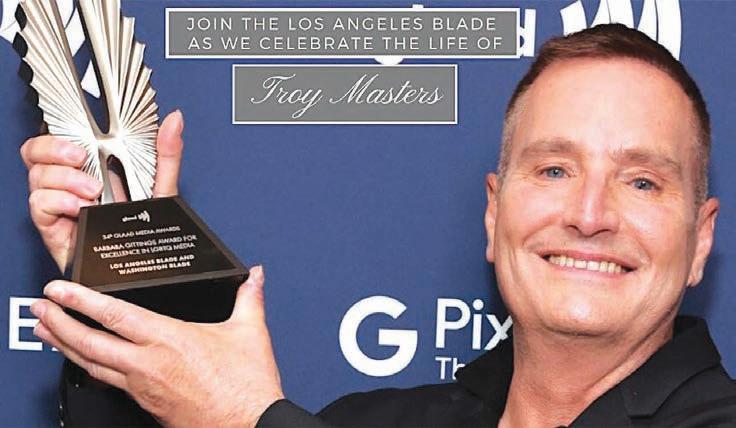 On Monday, Feb. 10 from 7-9 p.m., friends and colleagues of Troy Masters will gather at The Abbey in West Hollywood to celebrate his life and legacy as founding publisher of the Los Angeles Blade.