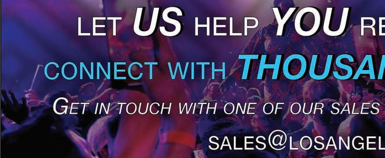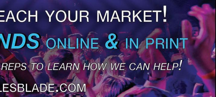 All material in the Los Angeles Blade is protected by federal copyright law and may not be reproduced without the written consent of the Los Angeles Blade. e sexual orientation of advertisers, photographers, writers and cartoonists published herein is neither inferred nor implied. e appearance of names or pictorial representation does not necessarily indicate the sexual orientation of that person or persons. Although the Los Angeles Blade is supported by many ne advertisers, we cannot accept responsibility for claims made by advertisers. Unsolicited editorial material is accepted by the Los Angeles Blade, but the paper cannot take responsibility for its return. e editors reserve the right to accept, reject or edit any submission. A single copy of the Los Angeles Blade is available from authorized distribution points, to any individual within a 50-mile radius of Los Angeles, CA. Multiple copies are available from the Los Angeles Blade ofce only. Call for rates. If you cannot reach a convenient free distribution point, you may receive a 26-week mailed