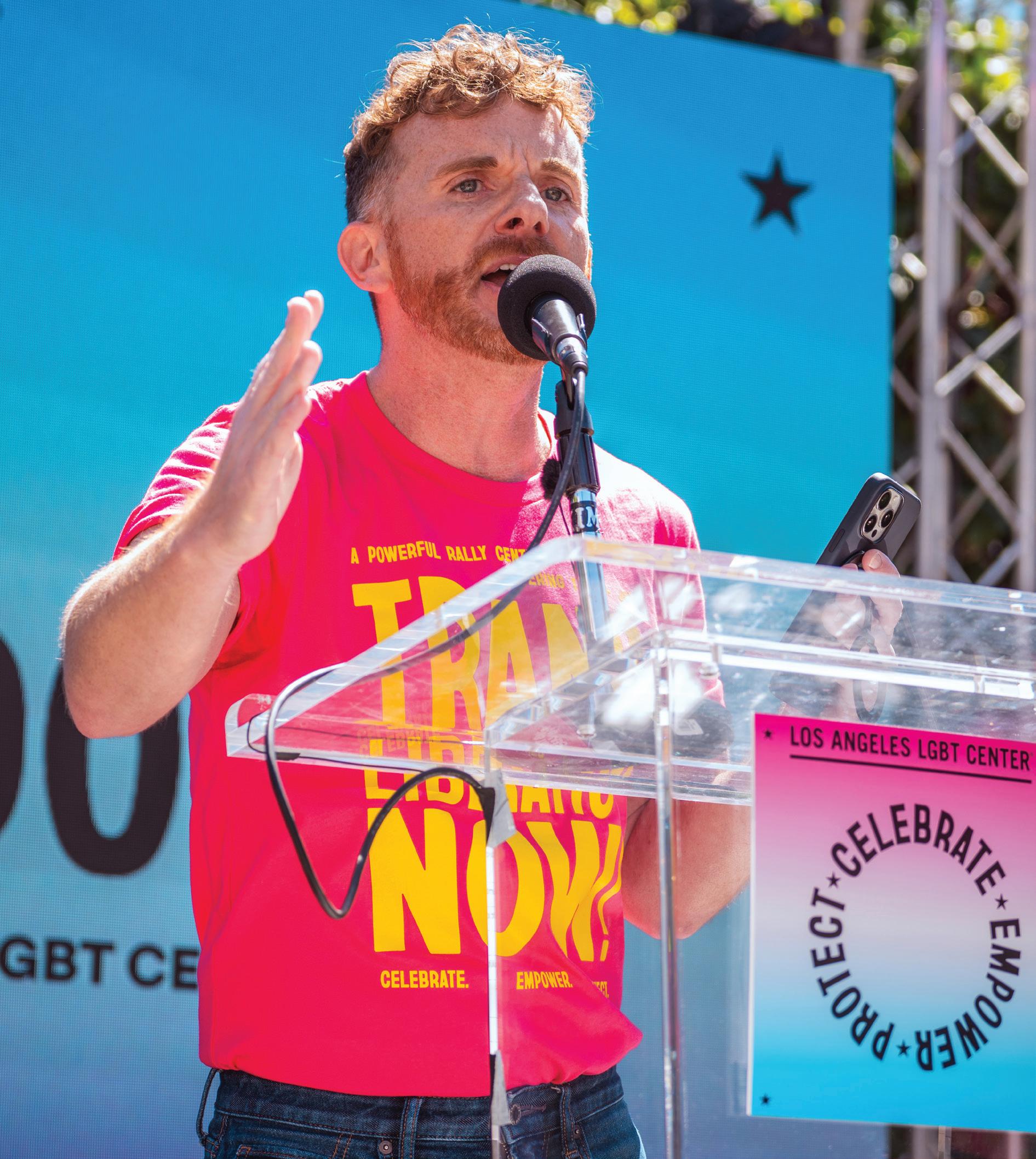 In response, the Center partnered with local and national groups—including TransLatin@ Coalition, Advocates for Trans Equality, and Equality California—to organize the Trans Liberation Now! Rally in April. Nearly 500 supporters gathered at The Village at Ed Gould Plaza on a Saturday morning to demand justice, safety, and liberation for transgender, nonbinary, intersex, and genderexpansive people. Keynote speaker Laverne Cox brought the crowd to its feet, declaring: