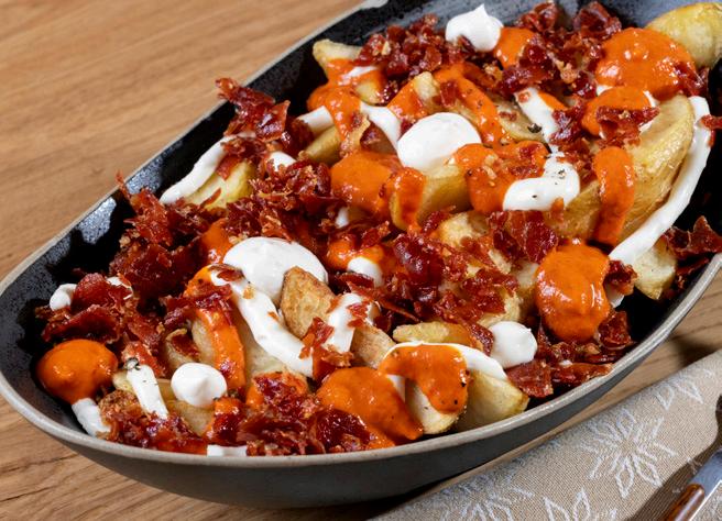 Patates braves amb pernil ibèric ó trufades amb parmesà.