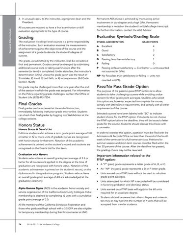 an overall grade point average of 4.0 are acknowledged at the graduation ceremony. Alpha Gamma Sigma (AGS) is the academic honor society and service organization of the California Community Colleges. Initial membership is attained by completing 12 units with a cumulative grade point average of 3.0. All life members of the California Scholastic Federation and those who graduated high school with a 3.5 GPA are also eligible for temporary membership during their first semester at LMC.