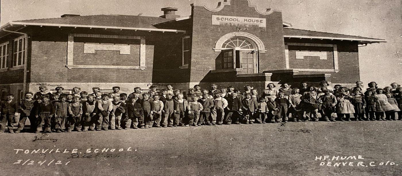 Many of our new residents do not know the history of the old Tonville School. The Number 113 Tonville School operated from 1906 to 1960. It operated under Louisville/80 district later becoming Tonville/113. The Tonville name came from the sugar beet loading area as sugar beets were weighed in tons. The area was southwest of Hudson and east of Fort Lupton, on old Highway 6 which became I-76. On July 1st, 1960, the district was reorganized and became a part of the new RE-3J/Keenesburg District, a joint Weld County Adams School District.