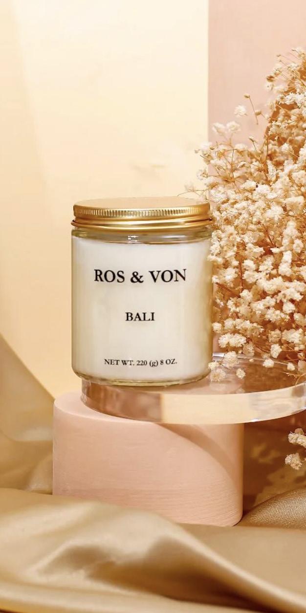 Tranquillity and relaxation in the luxurious ambience of Bali, a signature scented candle from Ros and Von. Crafted with a commitment to eco-friendliness and sustainability, each candle is made using premium soy and coco-soy wax, hand-poured to perfection. Vegan and crueltyfree, these candles are not only good for the environment but also for your home.