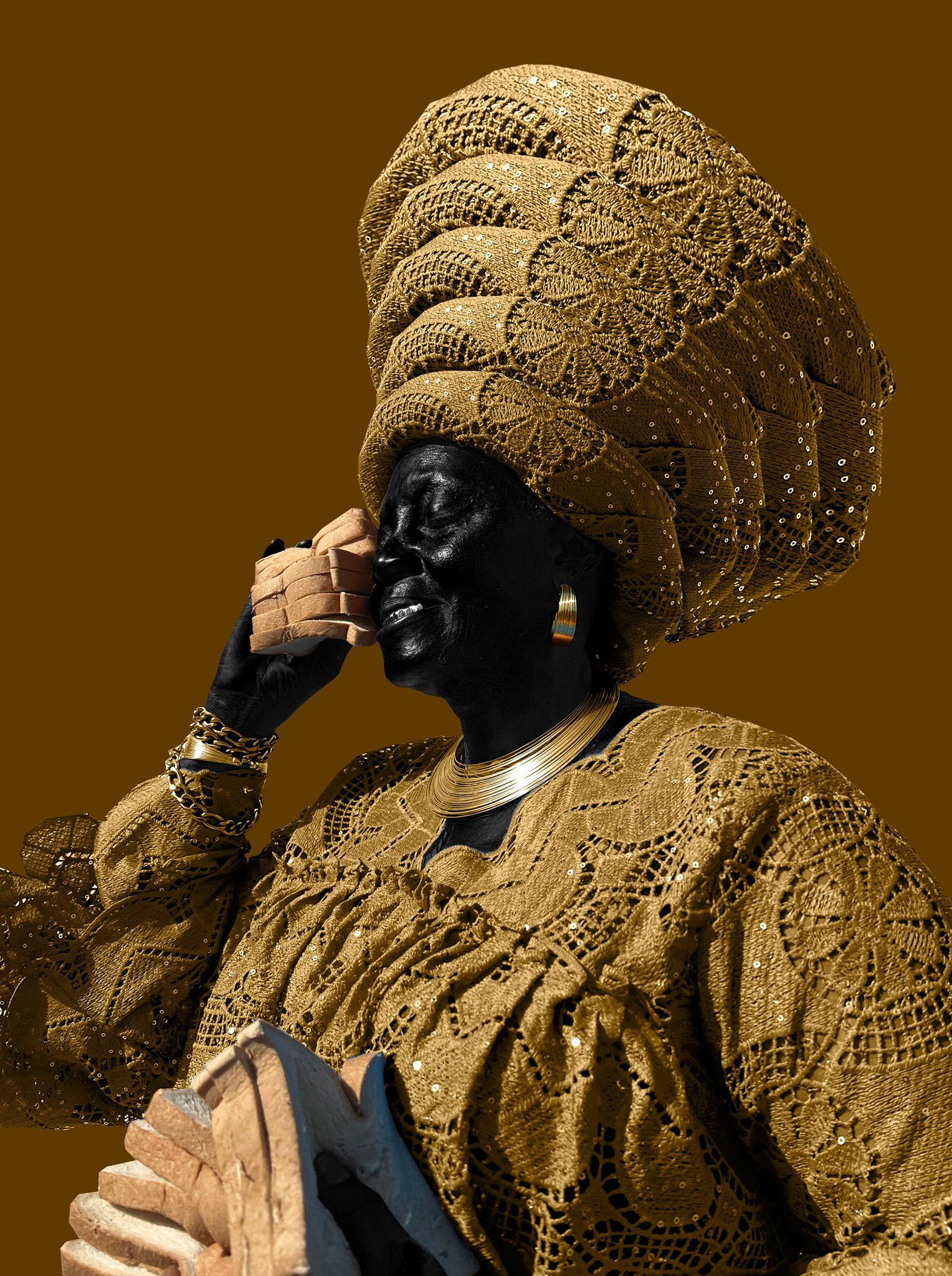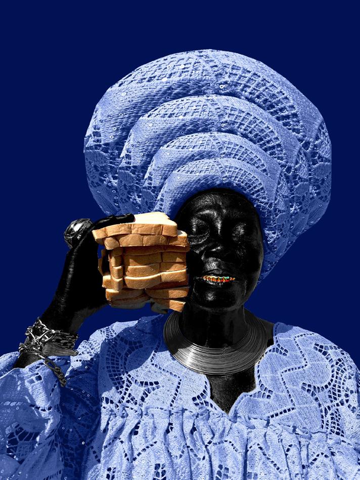 Wrapped in layers, tall and deliberate. It isn’t just fashion. It’s memory, experiences, pressure, elegance, survival. The kind of weight you don’t see until you feel it. And the bread? Wealth but also hunger; a desire. A need that speaks louder than silence. This is not about greed. It’s about gravity. The gravity of trying to provide, to belong, to rise.
