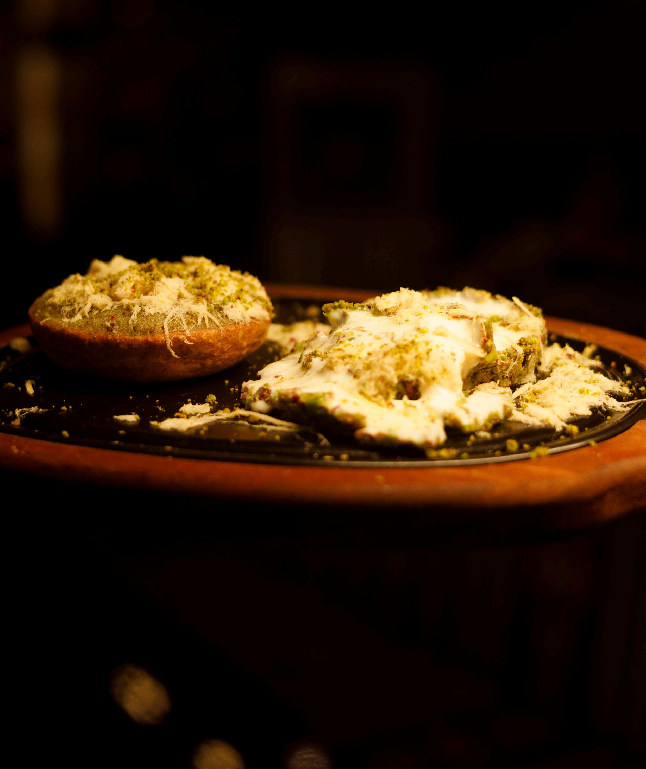 For the mains, the charcoal grill took centre stage. The mixed grill platter arrived with an earthy aroma and a beautiful fire display. The lamb chops were tender and rich, made deeper by the bold garlic sauce that lingered in the best way possible. The chicken shish tawouk skewers were soft, kissed by the grill with just the right char. Dessert was decadent; their special Yasmin Al Sham delight, a nest of Arabic cotton candy wrapped around aromatic Arabic ice cream. The flavours come alive because the kitchen sources with intention. Syrian spices like zaatar, Aleppo pepper and sumac, tahini,