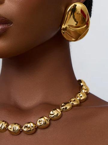 Some pieces are more than accessories; they are stories you can wear. The Ere Necklace takes its name from the Yoruba word for sculpture, and that spirit shines in its bold yet elegant form. With glossy gold plating and a sculptural silhouette, it balances strength and softness in a way that feels modern and timeless. Versatile for everyday, yet striking enough to be the finishing touch when you want to make an impression. In Yoruba, this is Éwà (beauty).