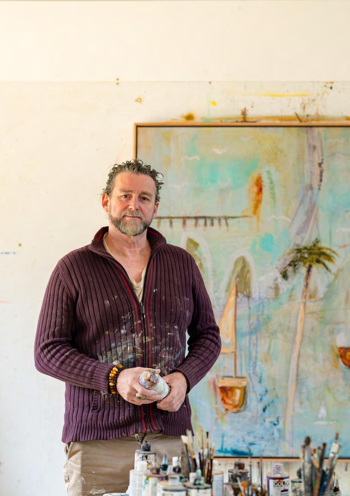 It wasn’t always like this. Parker’s early years were steeped in a more traditional artistic ambition. Growing up surrounded by his mother’s botanical paintings, he learned early that a blank canvas could feel like pure possibility “like magic,” he remembers. As a child he tried selling small works, then in his twenties travelled, taught himself to capture light and likeness, and exhibited small paintings at markets. After working in human services and screen printing, his guts finally told him it was time to leap. He quit everything, spent a year painting full-time, and the next thing he knew he had founded his own space, a property that became Stony Creek Gallery. Soon after came Michael Parker Gallery in town. These galleries are not mere shops but extensions of his studio life, where the work can breathe, be seen, and find resonance.