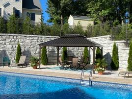 • Natural aesthetics. The textured stone appearance blends well with lake landscapes and can be designed into terraces or planter walls that become part of the property’s outdoor living space.