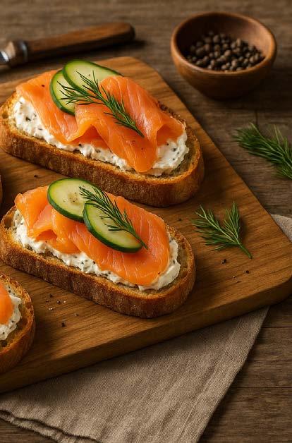 4. Arrange ribbons of smoked salmon over the cream cheese, folding them for texture and visual appeal.