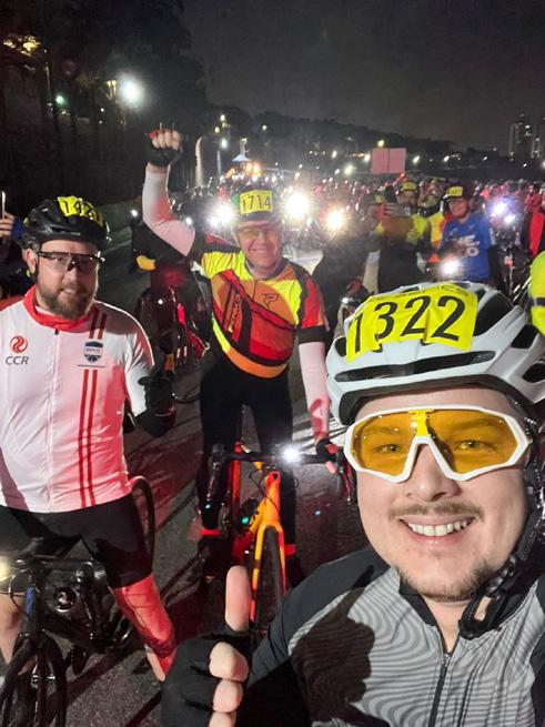 O de aque saúde do mês de abril vai para os nossos CEO Huber Ma elari, COO Fernando Valiate e CHRO, James Demarchi, que participaram de uma prova ciclí ica noturna pela cidade de São Paulo. Confira!