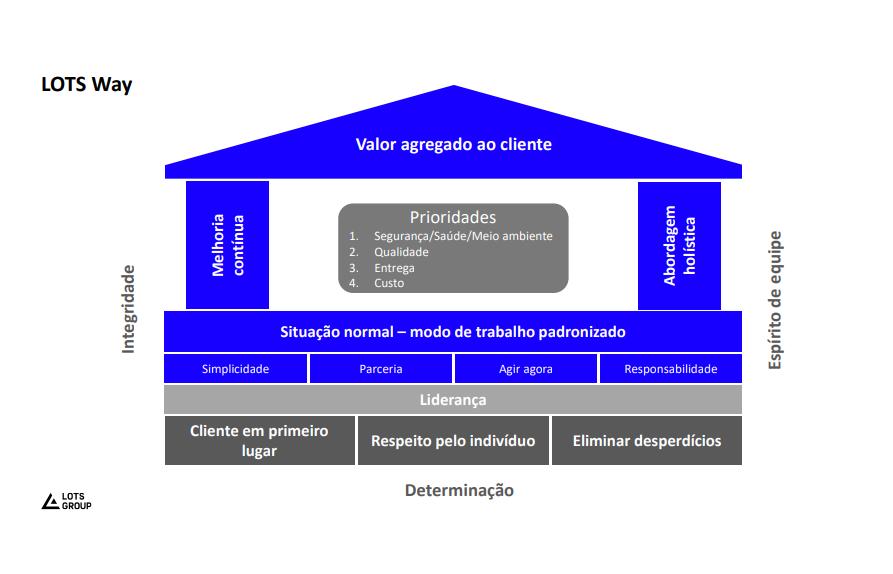 Você sabe quais são as prioridades da LOTS de acordo com o LOTS Way? Segurança, saúde e meio-ambiente são os valores que dividem o primeiro lugar, e por isso, na maioria das vezes devemos sempre os priorizá-los na tomada de decisão. Em segundo lugar temos a qualida de, essencial para manter o alto no padrão em todas as atividades que exercemos dentro da LOTS, já em terceiro lugar temos a entrega, valor focado no nosso cliente. E em último, mas não menos importante, o cu o, para garantir que nossas atividades tragam um bom retorno e saúde financeira para a empresa. Que tal colocar as prioridades no LOTS cada vez mais em seu dia a dia de trabalho?