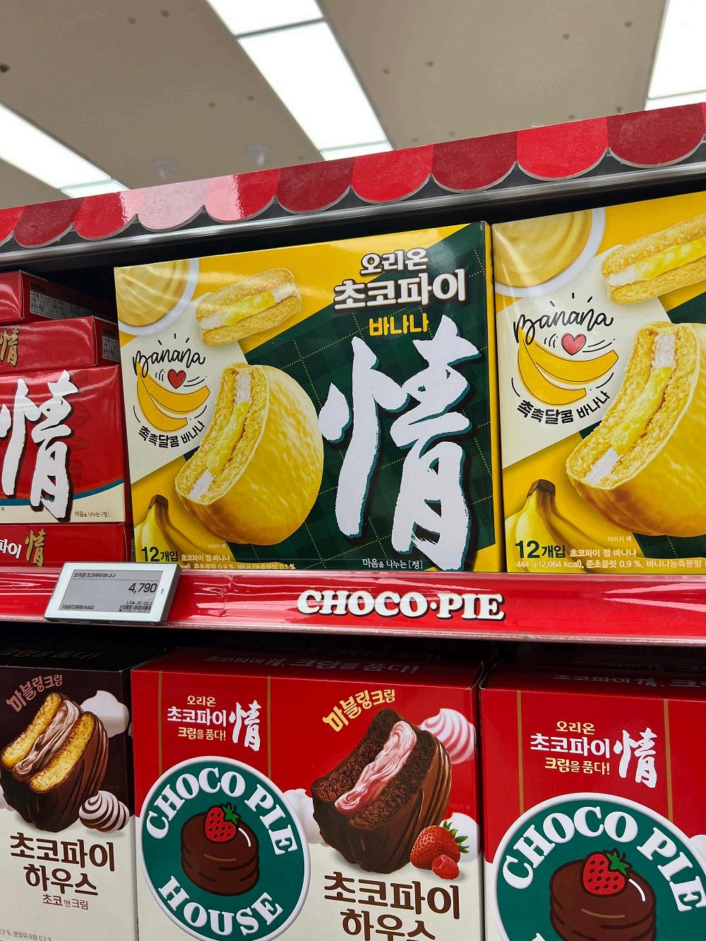 Pie is a soft cake with marshmallow filling dipped in chocolate. You’ll find various flavors and limited editions available at Lotte Mart Seoul Station.