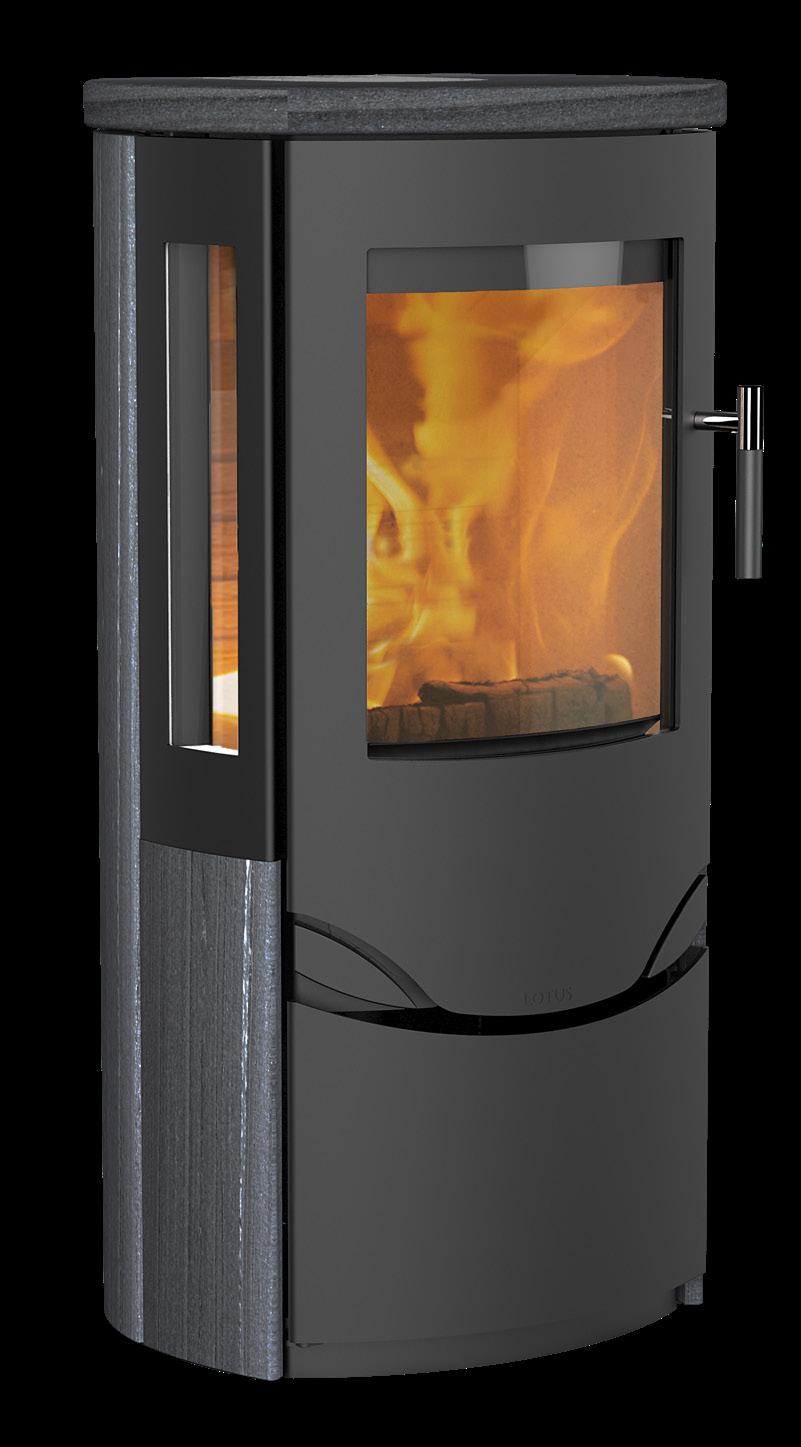De fleste ovner i serien er som standard utstyrt med Lotus’ komfortable Soft Close-system og fås i stål eller med kledning av kleberstein eller Indian Night-stein. Velger du utgaven i stål, kan du kjøpe topplate i kleberstein eller Indian Night-stein.