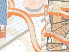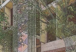 L’exercice a d’abord consisté à esquisser un « abstract drawing » illustrant nos idées principales, puis, de les concrétiser en projet architectural.