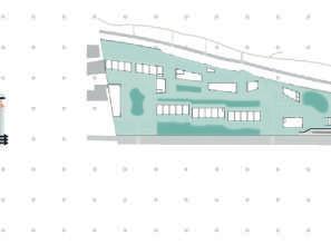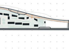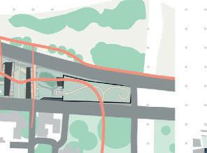 Un parking en silo se trouve à l’extrémité du site, possédant une toiture végétalisée connecté au parc par une passerelle piétonne, permettant de prolonger la coulée verte jusqu’à la mer.