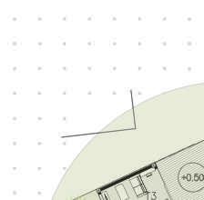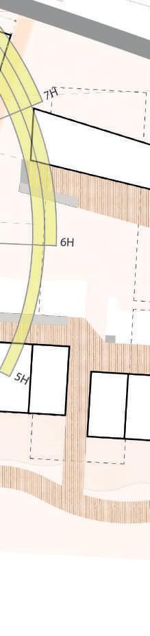 Le bâti s’adapte à la pente naturelle du site : le chemin principal se trouve sur une butte et la cuvette existante sur le site se transforme en noue pour récolter les eaux de pluies.