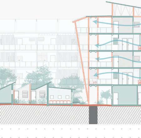 Afin de favoriser une mixité sociale, les activités des day labors encadrent les autres fonctions. On retrouve un jardin pédagogique qui pourrait faire le lien avec l’école primaire de l’autre côté de la rue.